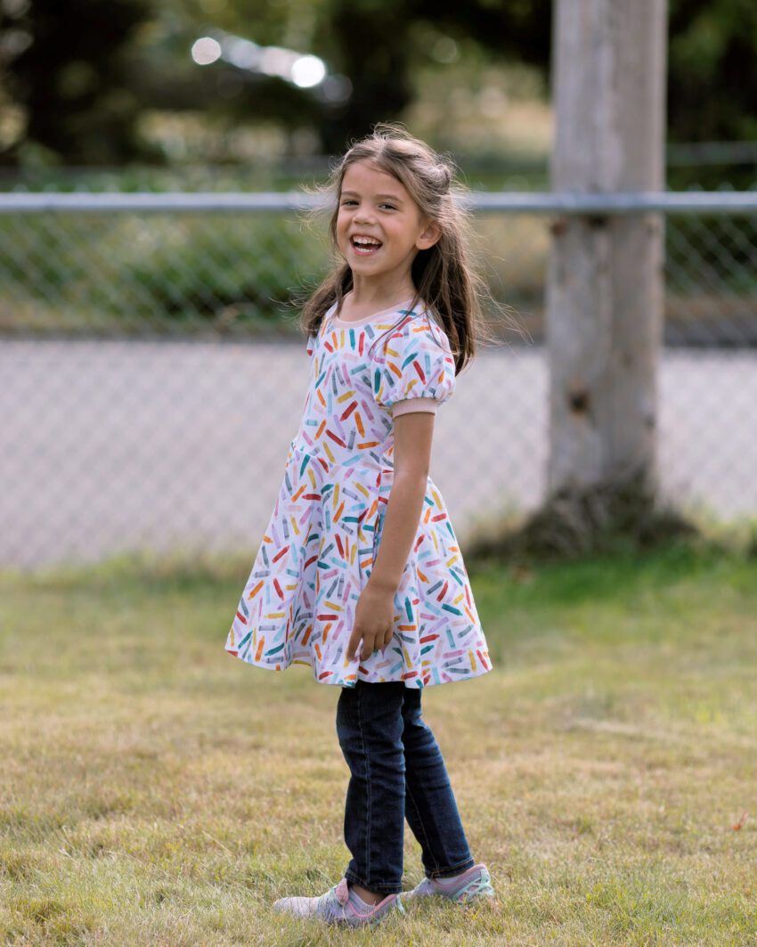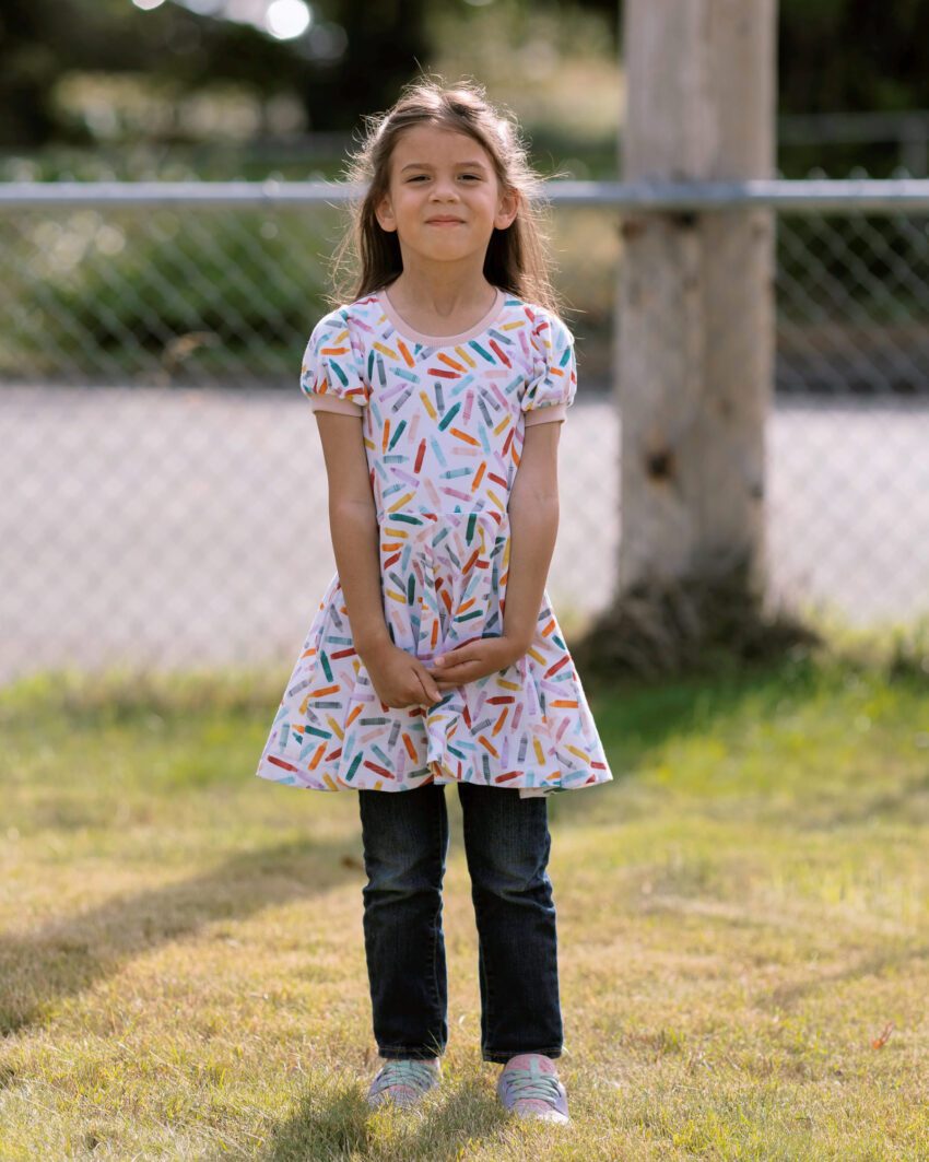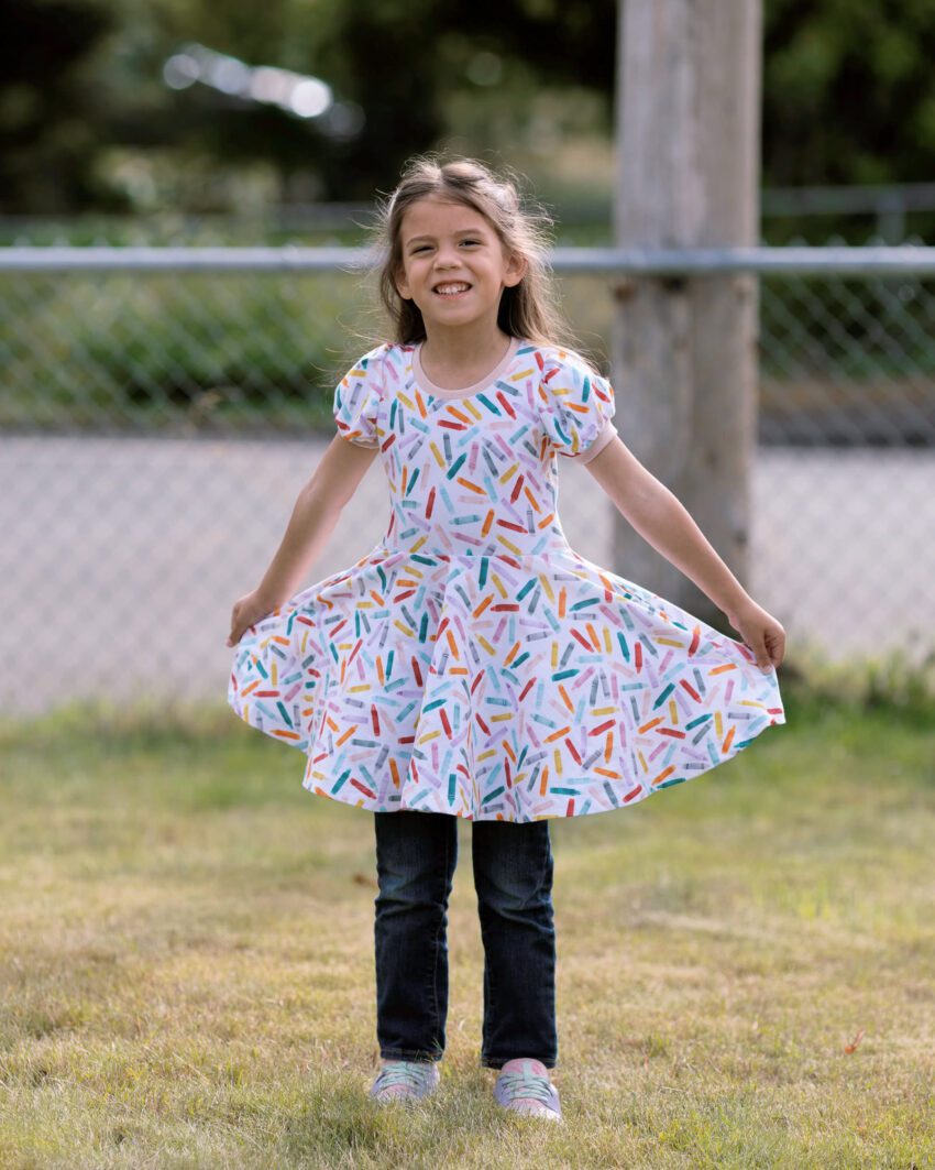 Going through a backlog of photos, I have been OUT of the blogging game for so long! Today I’m sharing the adorable crayon dress I made for Little Miss when she started kindergarten. I was not ready for that. She’s in first grade now and I’m still not ready haha.