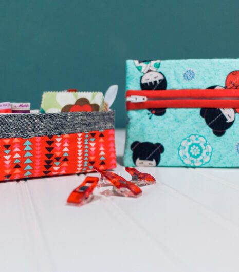 Today, I am sharing a couple quick, tiny sewing projects that I worked on this past weekend. There’s a Pixie Basket, and an Amy’s Pretty Pockets pouch.