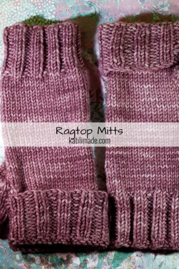 I’ve already got plans to make a second pair in Malabrigo Rios. I think for that pair, I will add the cable from Commuter; I saw a pair like that on the Ragtop projects page and love it. I thought about doing the full ribbed wrist, but man I hate knitting ribbing, and the cable is cuter!