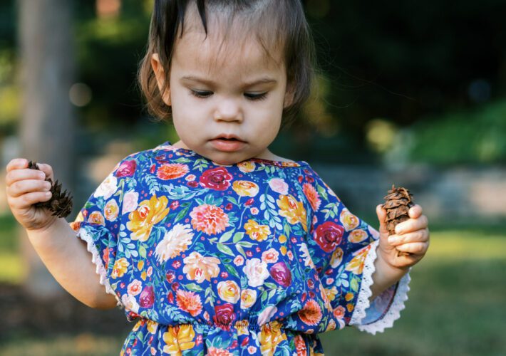 The patterns are also from some familiar names! The dress is Sophie from Peek-a-boo Patterns, which went together so quickly. The pants were another quick and easy sew, made with the pattern Gusset Pants from Lowland Kids.