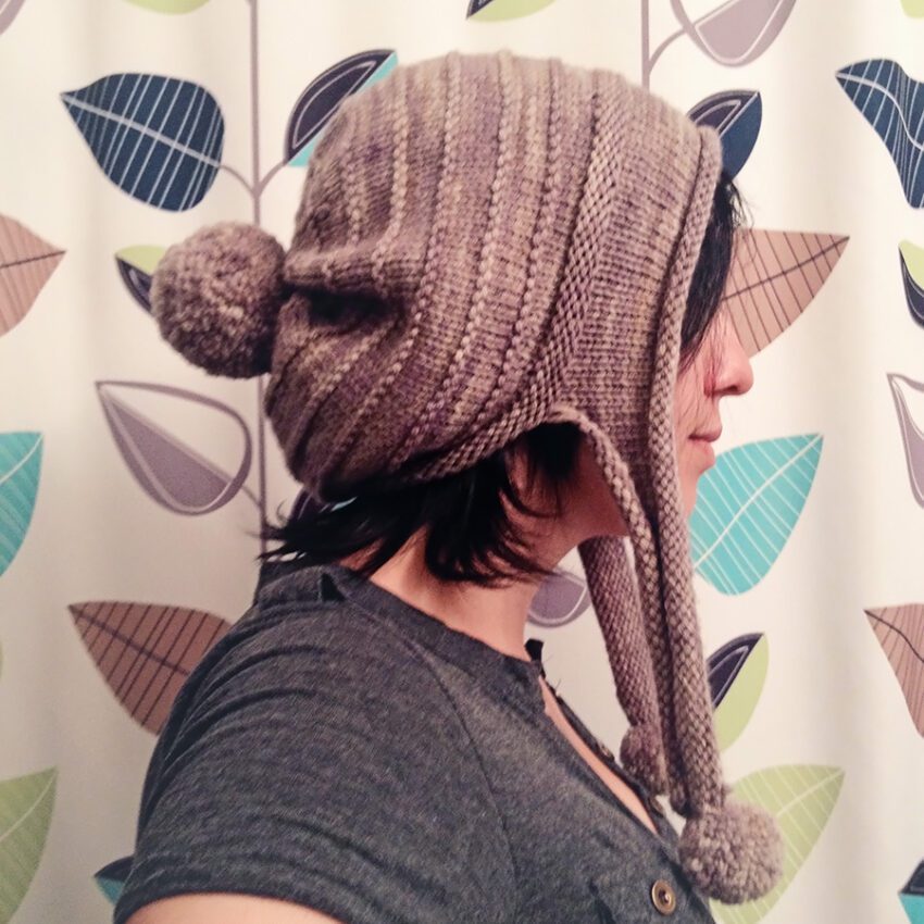 Anywho, I went and bought yarn and needles, and was done with my hat shortly afterwards. I haven’t gotten a chance to get a good photo of this one (my normal tricks for selfies aren’t working so well with this hat, and I don’t know why!) but here’s a sucktacular camera phone shot. It’s a great quick pattern and I loved it.