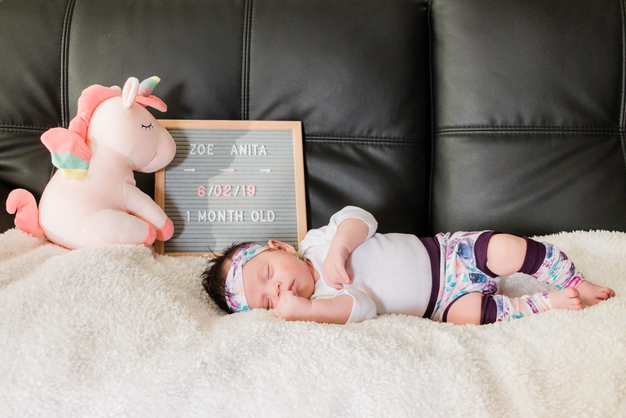 Zoe turned one month old in June, so I thought a cute tiny pair of shorts and some legwarmers would make the perfect outfit for her photoshoot!
