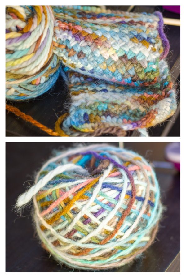 This next one almost felt a little blasphemous to undo. There’s a photo of my Cross-Stitch Scarf on Flickr that keeps sending traffic to my blog, and it’s been pinned on Pinterest a few times. Everybody loves it, except me. The stitch is annoying because it’s not clearly written in the book, so I was probably doing it wrong. Now it’s been so long that I forgot how I was doing it in the first place! And as I’ve mentioned before, I just don’t like knitting with alpaca. I may re-home this yarn now that it’s no longer an incomplete scarf, because I don’t see myself using it.