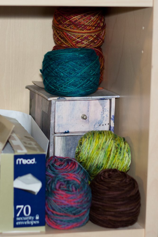 Really though, as far as organization goes, the Stash feature on Ravelry has been a lifesaver. Once I know what yarn I’m looking for, I know where to find it, but there’s no way I could keep track of what yarn I have without my Stash. Every time I get new yarn, regardless of where it winds up in the house, I take a picture, make note of the color and dyelot, and immediately add it to my stash. It’s all a mystery from there!